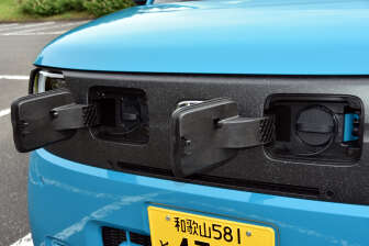 ボディー全体は丸みを帯び、昭和のレトロな雰囲気が漂う。給電口はフロントグリルに巧みに組み込まれており、デザインとの一体感が見事。左側に普通充電、右側に急速充電の2口を備える。下位グレード「e:G」では急速充電はオプションとなるが、実用性は十分だ。上級グレード「e:L」のホイールには切削加工が施され、上品で洗練された印象を与える。