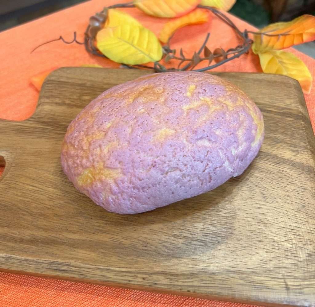 新商品!絹芋(シルクスイート)を使用した しっとりなめらかで 豊かな甘さのクリームを包んで さつまいもパウダー入りのクッキー生地を トッピングし焼き上げました。 1個 188円