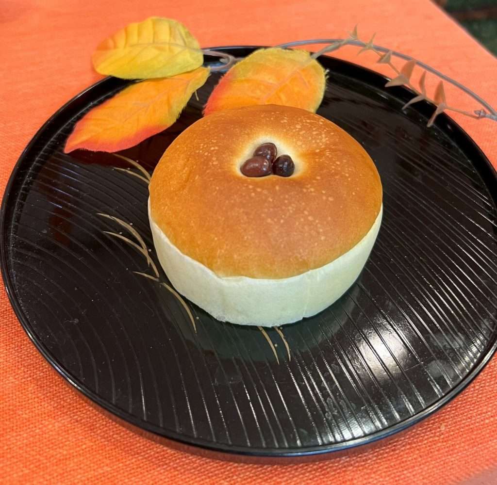 新商品! 北海道産黒豆と国産きなこを使用した きなこの香ばしさが特徴のクリームと 十勝産こしあんとおモチ(ギョウヒ)を たっぷり包んで和風な雰囲気のパンに仕上げました。 1個 238円