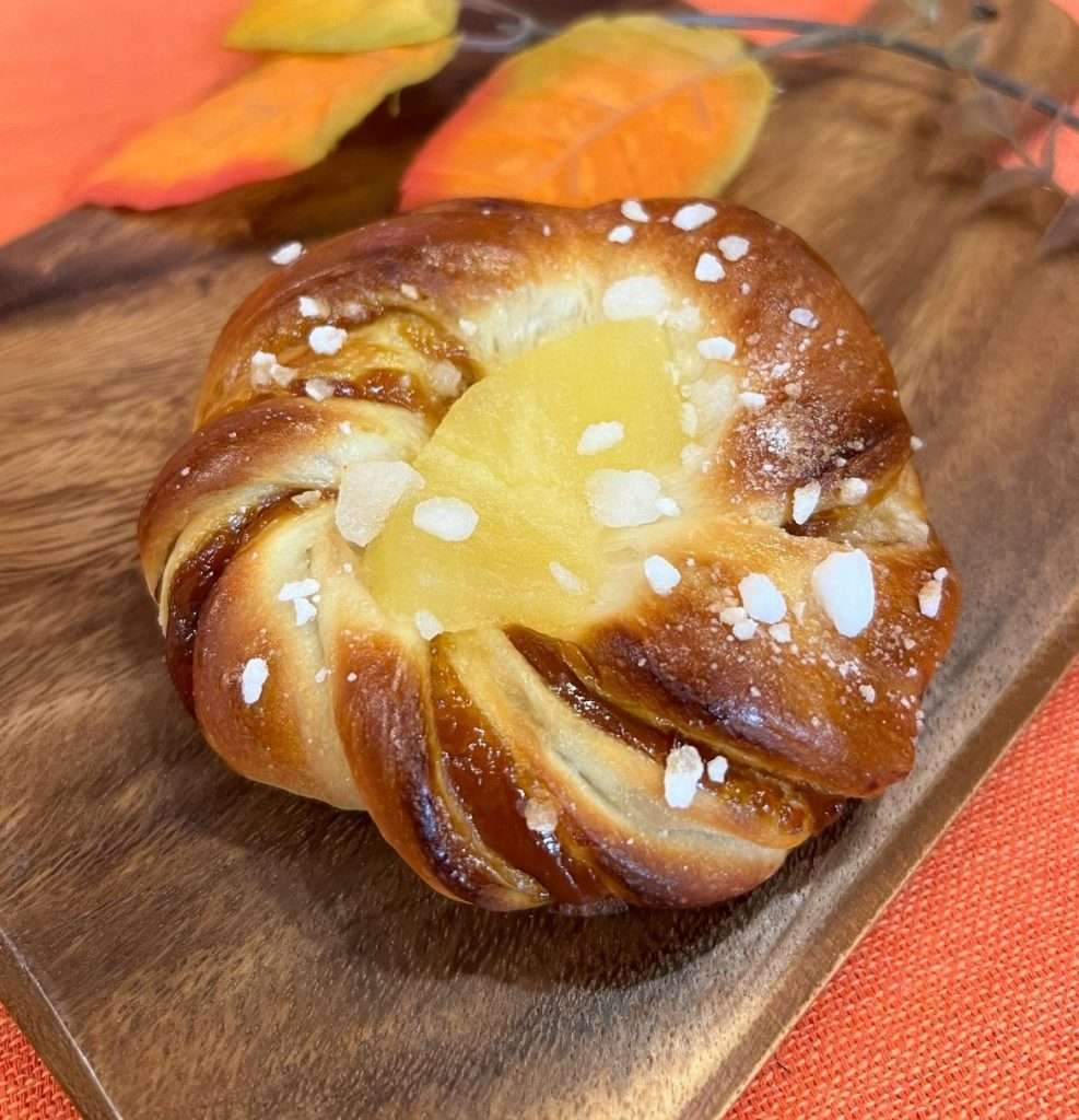 アーモンドフィリングと ラム酒づけレーズンとりんごを 折り込み焼き上げ フォンダンをトッピング。 洋菓子のようなパンに仕上がっています。 1個 235円