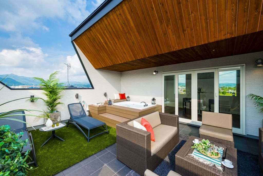 リビングからひと続きに広がるアウトドアリビングは、自然の光と風を感じながら過ごせる特別な場所。