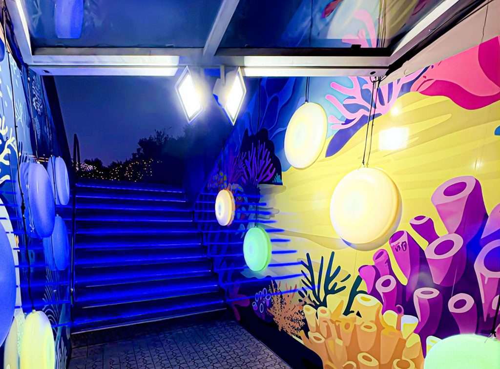 階段から地上に出ると、まるで物語の世界へ足を踏み入れるような、広く幻想的な光の世界につながります。