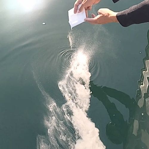 お預かりした火葬済のご遺骨を粉骨(パウダー化)して、海洋上に散布することです。