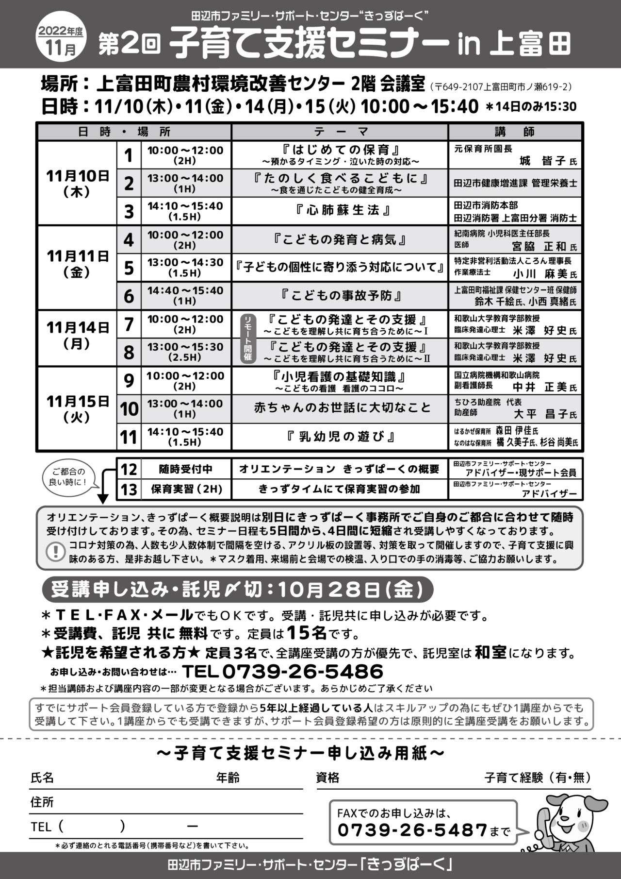 2022年度第2回子育て支援セミナーin上富田 を開催します!