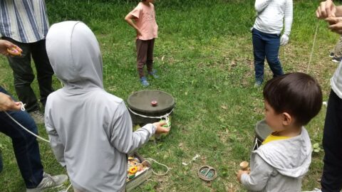 何もない場所だと退屈になりがちですが、少しの道具と友達がいると、どんどん遊びが広がります。
