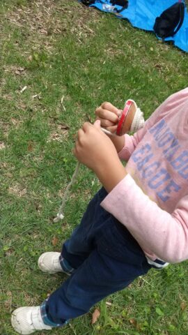 スタッフさんが、コマやけん玉を用意してくれていました。