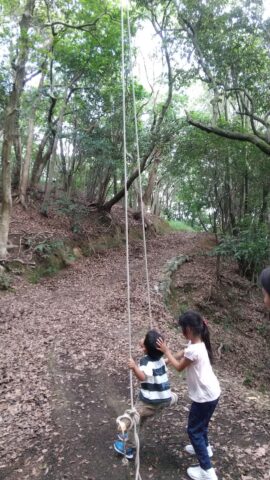 木の枝にロープをかけているので、いろいろな方向に揺れます。