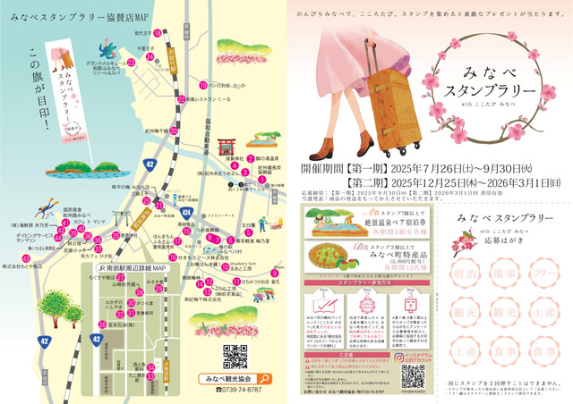 お店で飲食したり、お土産を購入したり、温泉に入ったり、みなべ町を巡ってスタンプを集めて応募すると、抽選で景品が当たる。今年も2回の期間に分けて開催(第1期:2025年7月26日~9月30日 第2期:2025年12月25日~2026年3月1日)。- 開催期間