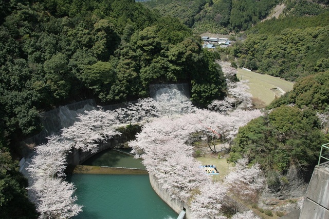 ダム湖に映える桜の美しさはひときわ
