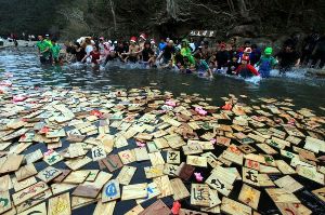 期間限定の仙人風呂で毎年1月に繰り広げられるかるた大会! 仙人風呂に杉の木で作られたかるた札を浮かべ、仙人と平安衣裳の女性がかるたを詠みあげると、参加者たちは札を目指して猛ダッシュ!より多くの札を奪取し競い合う、大盛り上がりの恒例イベント。参加者全員で楽しむことのできるかるた大会は毎年県内・県外から参加者が多く集まる。チーム参加対象は中学生以上。※チーム参加に関する問合せは熊野本宮観光協会へ