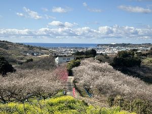 なだらかな山々に見渡す限り梅の花が広がり、名実共に日本一の梅林。白く可愛い花が山一面を飾る早春には、メジロやウグイスの美しい歌声も楽しめる。ペット入園可。