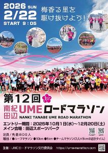 今回で11回の開催となる南紀田辺UMEロードマラソン。美しい山々や梅園、南紀田辺の海を見ながら走ることができる。種目は、3ハーフマラソン・10km・5km・チームマラソン(3人×5kmの合計タイム)。定員先着800人。エントリーは2025年12月20日(土)まで。