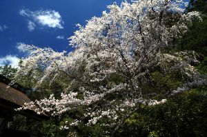 ひき岩の景勝地に映える野趣あふれる桜