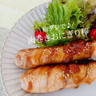 \みんなで食べたい/梅ダレで♪肉巻きおにぎり棒