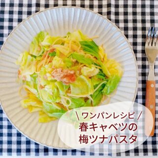 \ #ワンパンレシピ /春キャベツの梅ツナパスタ
