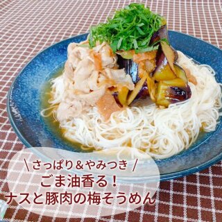 \ さっぱり&やみつき/ごま油香る!ナスと豚肉の梅そうめん