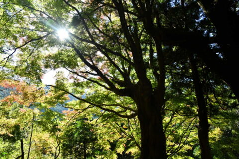 田辺市中辺路町高原の霧の里休憩所から近露方面に20分ほど古道を登った所にカエデの大木があります。樹齢はどれぐらいあるのか、私には想像もつきませんが、幹の太さが二抱えほどもあるカエデは他に知りません。
