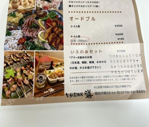 今回はお店へ直接取りに行きましたが、田辺市街地だと希望の時間に自宅へ配達してくれます。