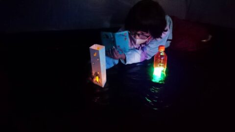 作ってみたランタンは、暗いテントの中で光を灯してみました(*´ω`*)