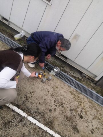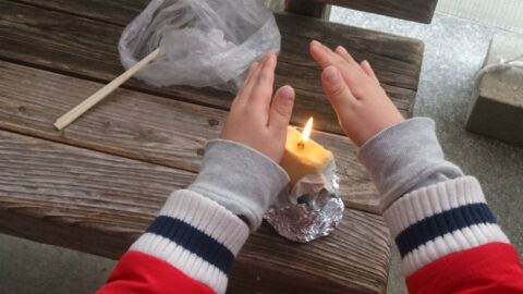 実際に火を使用する実験は危ないので外で行いました(;^ω^)