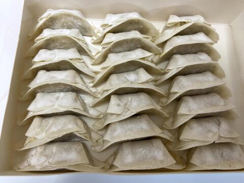 冷凍ギョーザ21個入(750円、以下税別)と自家製ギョーザたれ(60円)を購入しました。