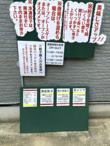 店主の方は2020年5月に横浜の餃子居酒屋を閉店し、上富田町へ転居。テークアウトに営業形態を変えお店で人気だった自慢のギョーザを提供しています。