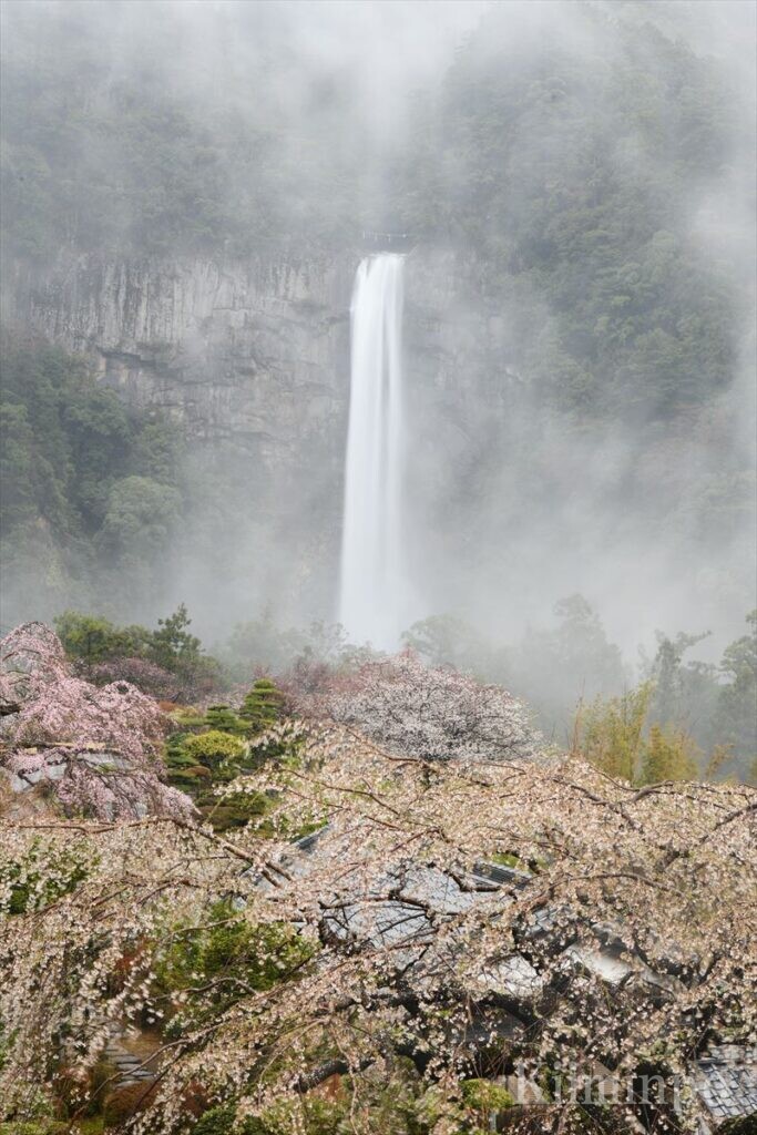 那智山青岸渡寺の境内には、三重の塔と那智の滝を望む展望地があります。「満開の桜と那智の滝」の写真を一度は撮りたいと思っていましたが、なかなか機会に恵まれず、今年、ようやく念願がかないました。