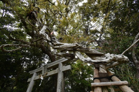 この神社林には薄紫色の花を咲かせるフジがあり、世界的な博物学者南方熊楠はその優雅な姿から「オカフジ」と命名しました。実際にはヤマフジだそうですが、ほかのフジとは色合いが異なります。