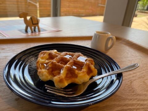 遊び疲れたら、おやつタイム。すさみ町産の蜂蜜付きワッフルは、甘い香りに包まれながら、蜂蜜をたっぷりかけて食べるのがお薦めです。