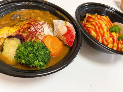 次に紹介するのは、昔ながらのオムライス(650円)やたっぷり野菜の自家製カレー(650円)に小かけうどん(+250円)が付いた満腹セット。