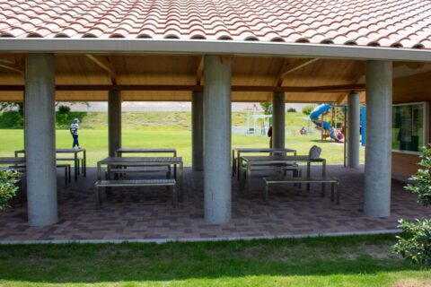 遊具のエリア近くには屋根付きの休憩所があり、パパ・ママも子どもさんから目を離すことなく休憩できそうです。