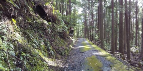 案内看板に従って、県道43号那智勝浦古座川線で坂足地区を目指します。うっそうと緑が茂る山道は、車1台分の幅しかない箇所が続くので運転に注意してください。集落に到着すると展望所の看板があり、遠くにボウズ岩が見えます。