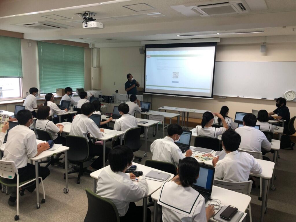 7月5日、神島高校(和歌山県田辺市文里2丁目)の課題研究の授業において、商品開発に取り組む学生21名が地域の新聞社の協力を得て、企画したイベントのオープンデータ化を行った。