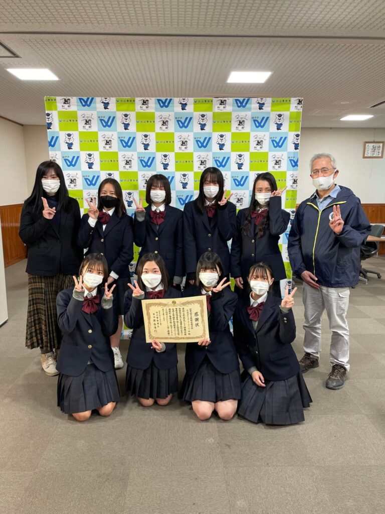 熊野高校Kumanoサポーターズリーダー部は、田辺警察署からの依頼で、高齢者の運転免許返納や振り込め詐欺防止などを呼び掛ける動画制作に協力し、同署から感謝状を頂いた。