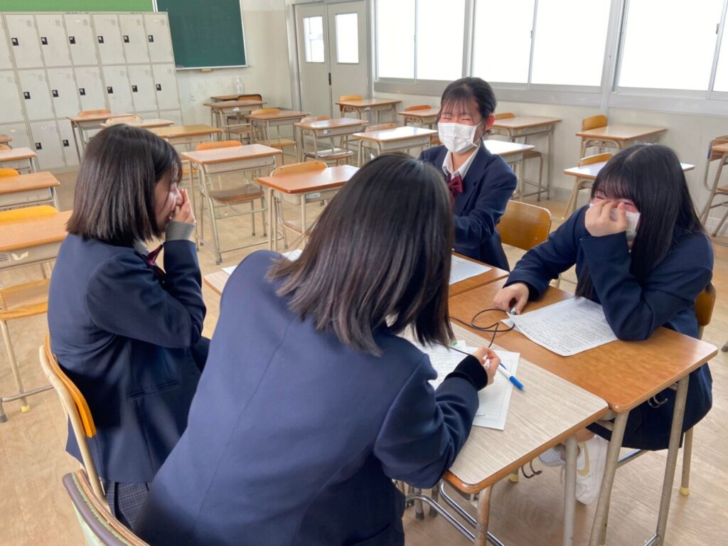 熊野高校Kumanoサポーターズリーダー部は、2022年3月15日(火)に、ハートフルチェックボランティアとして、上富田社会福祉協議会の活動『ハナミズキの会』に参加されている上富田町鳥渕地区のお二人とお話をした。