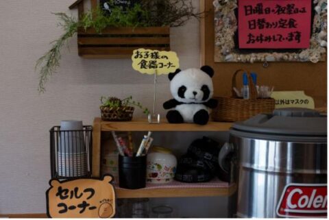 幼児用イスも1脚あります。全てセルフ方式のお店です。