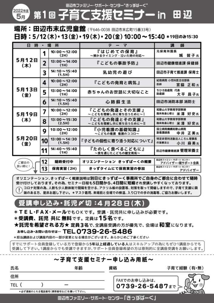 2022年度第2回子育て支援セミナーin田辺 を開催します!