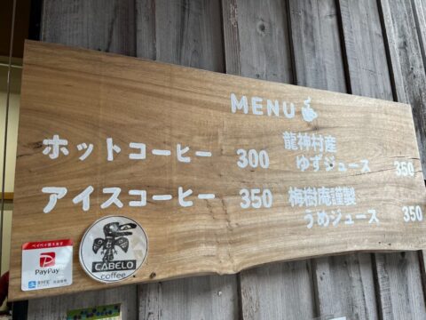 WOOD STOCK CAFEで注文できるのは、中辺路町近露(ちかつゆ)のCABELO(カベロ)さんが焙煎したコーヒーと、地元の柚子や梅を使ったソフトドリンクです。飲み物と一緒に龍神村の作業所で作られたクッキーなども販売されています。