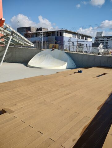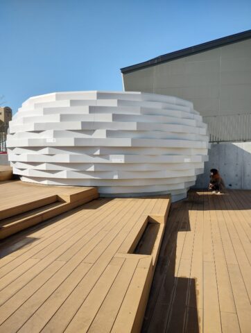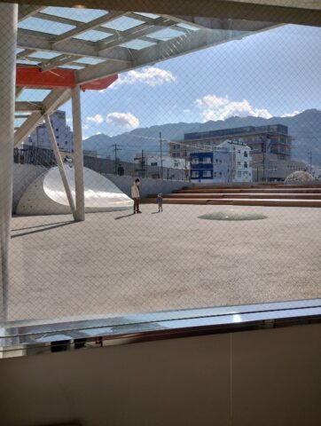 夏には、ノビノスルーフの壁からミストシャワーが出るので、子どもたちが大はしゃぎしそうです。