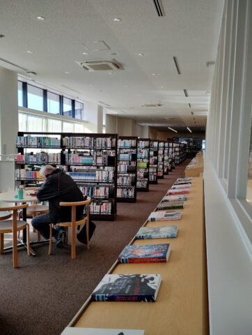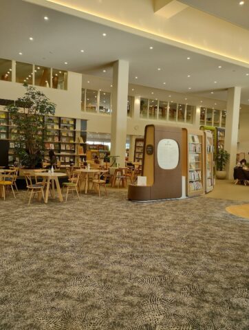1階にある広い駐車場に車を止めて施設の中に入ってみると、今までの自分の図書館のイメージが変わりました。