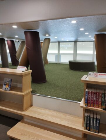 3階のこどものライブラリーは、ゴロゴロしながら本を読める読書の森や、本を読んだり友だちとカードゲームができたりする「秘密基地」というスペースがあります。
