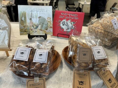 私が滞在する間、お菓子を買いに来る方がちらほらやってきては少しお話しして出ていきました。会場に並べられている物の中では、古絵本が特に人気だそうです。