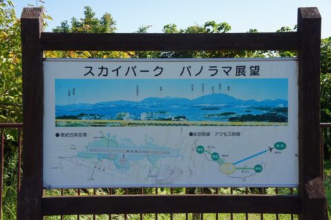 白良浜から南紀白浜空港へと続く「白浜スカイロード」の途中に、田辺湾と白浜の街、そして滑走路を一望できる「スカイパーク」があります。