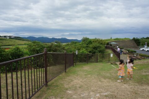 まず向かったのは、南紀白浜空港前の坂道を真っすぐ上った先にある空港公園。空港と滑走路、そして滑走路の先にはアドベンチャーワールドが見えます。