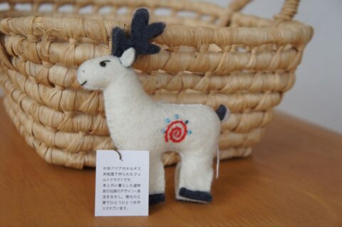 私も子どもと一緒にクイズに挑戦。キルギス共和国で作られた、かわいい手作りのフェルトクラフトをいただきました。子どもの宝物の仲間入りです。