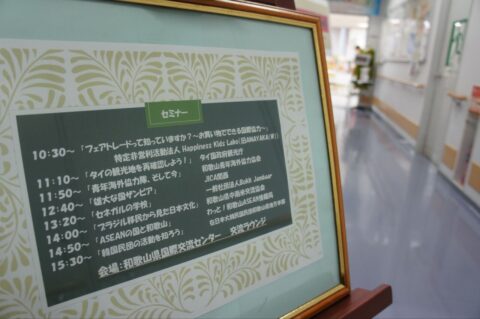 セミナー会場では、「お買い物でできる国際協力」や「ASEANの国と和歌山」など身近に感じられる話から、「雄大なザンビア」や、「セネガルの学校」など、なかなか聞くことのできないお話会が開催されていました。