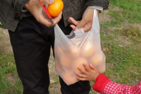 一人一袋、自分たちで採ったミカンを持って帰ることができます。