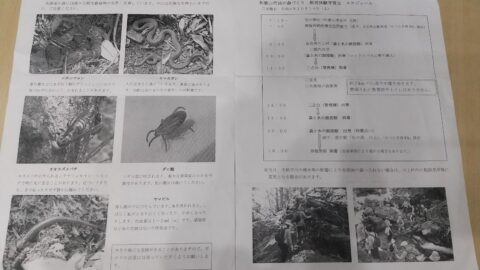 資料には当日のスケジュールとともに、散策ルートには危険箇所があることや、危険生物についての注意を促す説明文がありました。