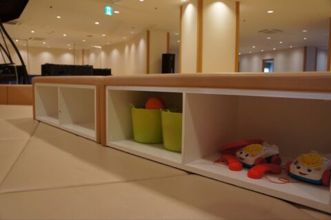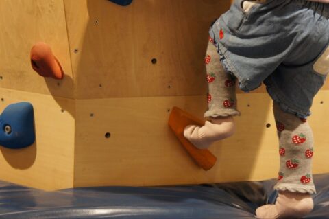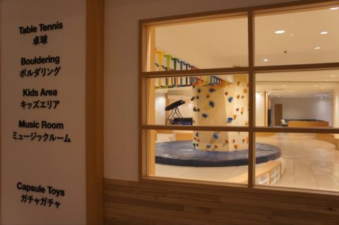 2階には、キッズエリアがあり、ボルダリングやおもちゃで自由に遊ぶことができます。
