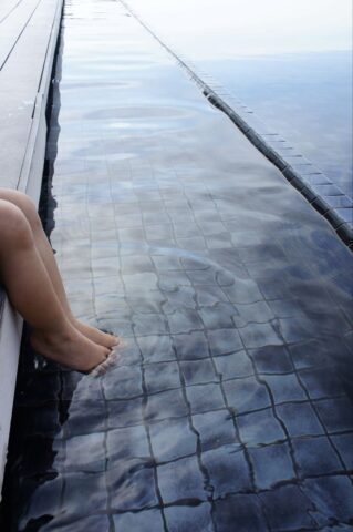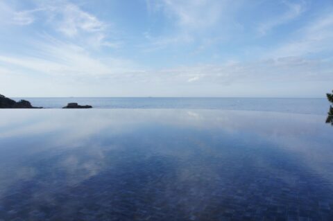 テラスには、海と一体となっているような美しい「インフィニティ足湯」があります。